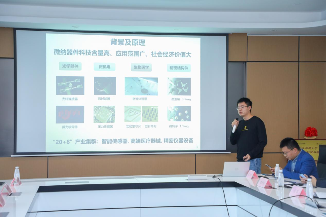 深圳大学机电学院马将特聘教授的团队成员杨剑推介了“微纳尺度精密模芯制造关键技术、装备与应用”。项目核心产品为非晶合金精密微纳制造成型装备与微纳尺度金属模芯,团队掌握了能够突破现有金属微纳模具加工行业极限的关键技术,包含加工目前最细小结构及变革性提升制备效率的技术,效率提升100-3500倍。具有在高强度高硬度的金属模具表面成型可调控的纳米结构能力,模具表面粗糙度达5nm。