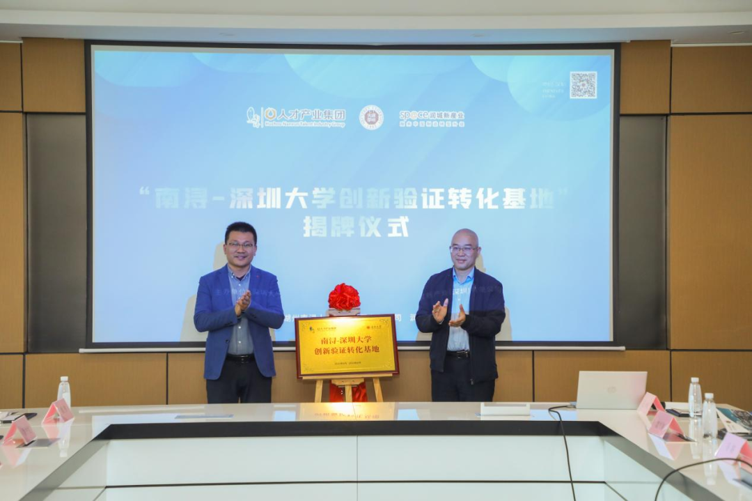 12月2日,由深圳大学、湖州南浔人才产业集团有限公司联合主办,深圳大学创新验证中心、润城新产业(深圳)有限公司、深圳市众创空间协会(深创协)、深圳大学南山工业研究院、深圳大学龙岗创新研究院、深圳大学龙华生物产业创新研究院、深大会承办的“南浔-深圳大学创新验证转化基地”揭牌仪式暨“浔深创”产学研项目对接活动第一期在深圳华润前海大厦A座42楼成功举办。